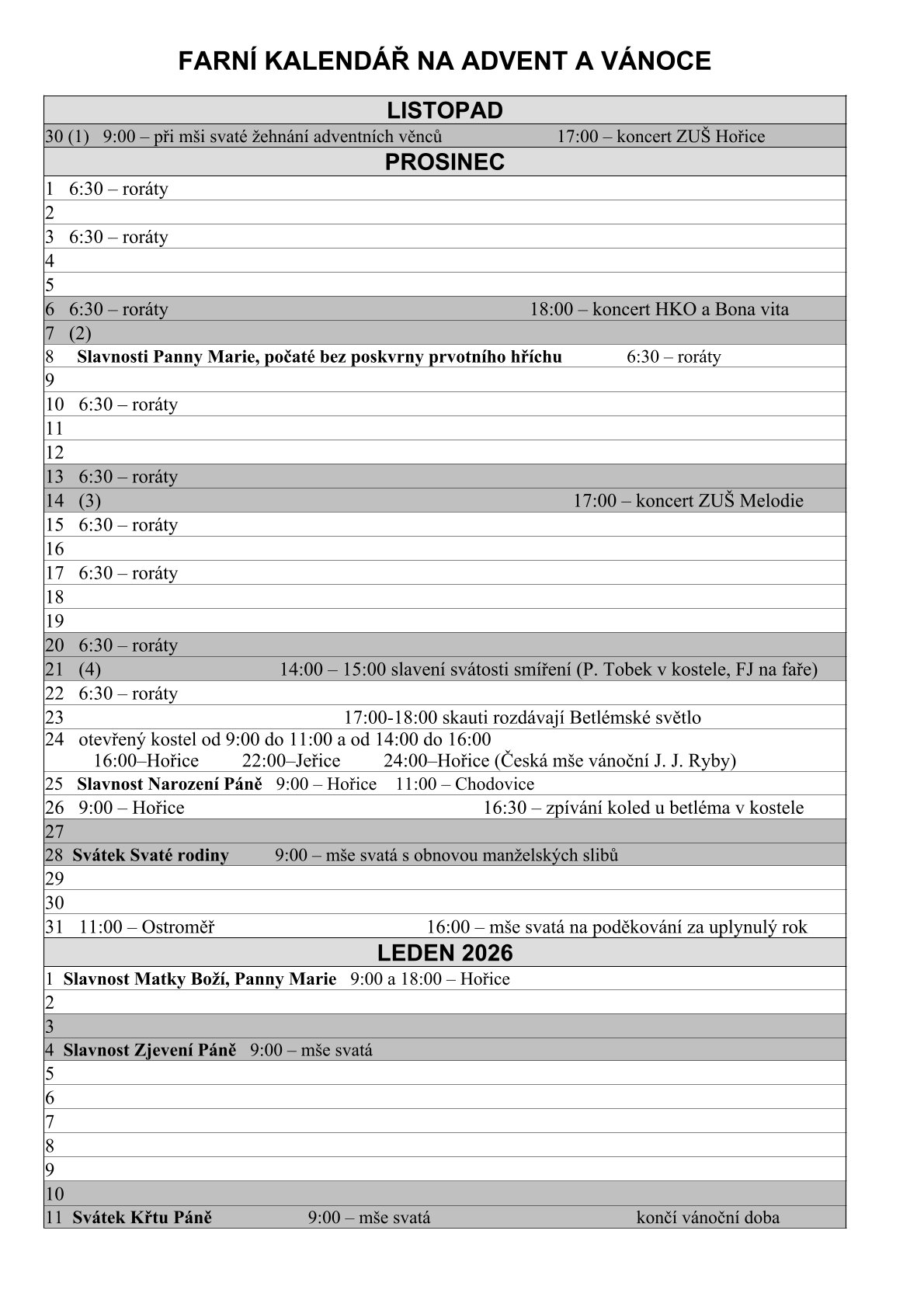 Modlitba růžence: v úterý a v pátek 30 minut před mší svatou