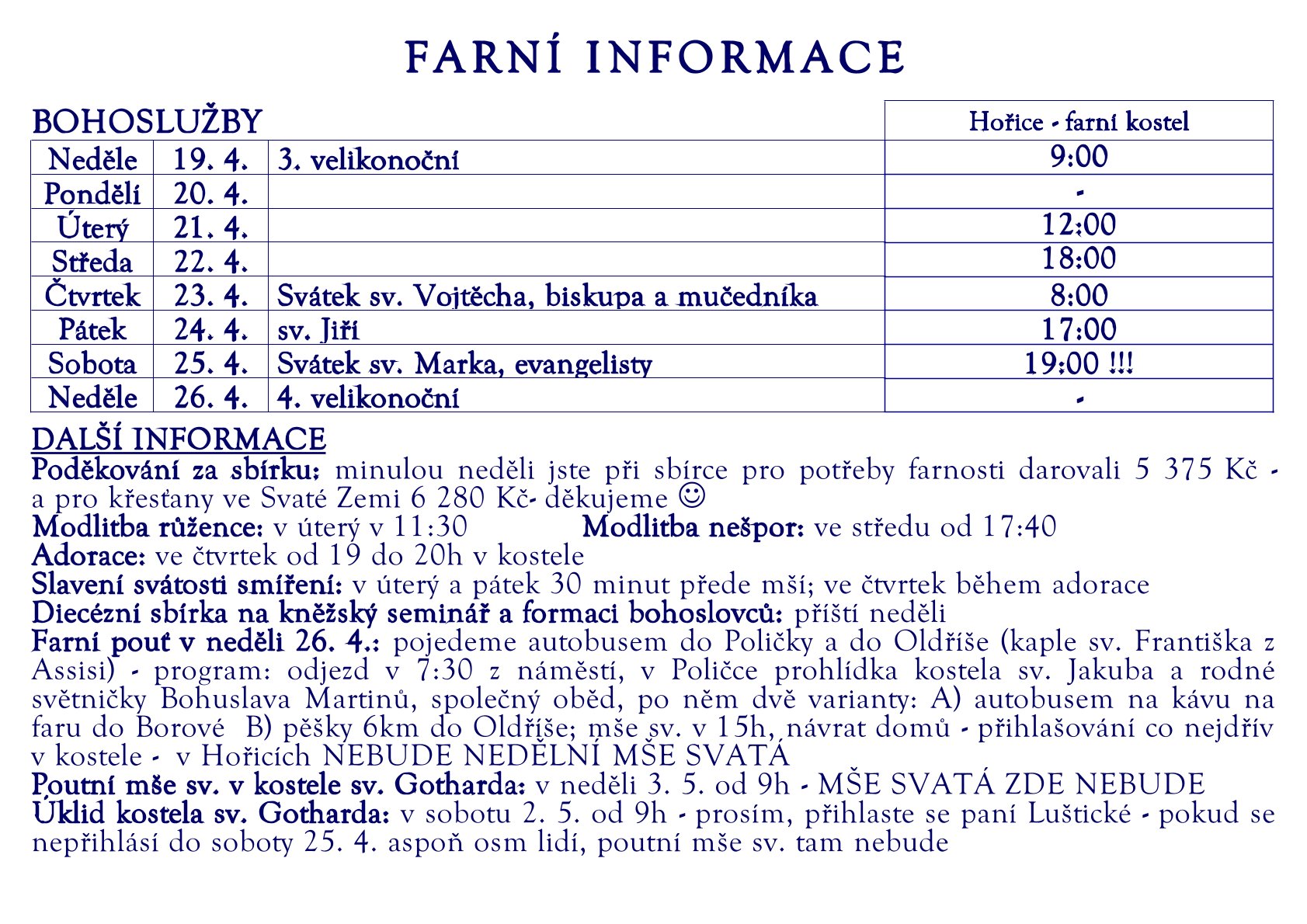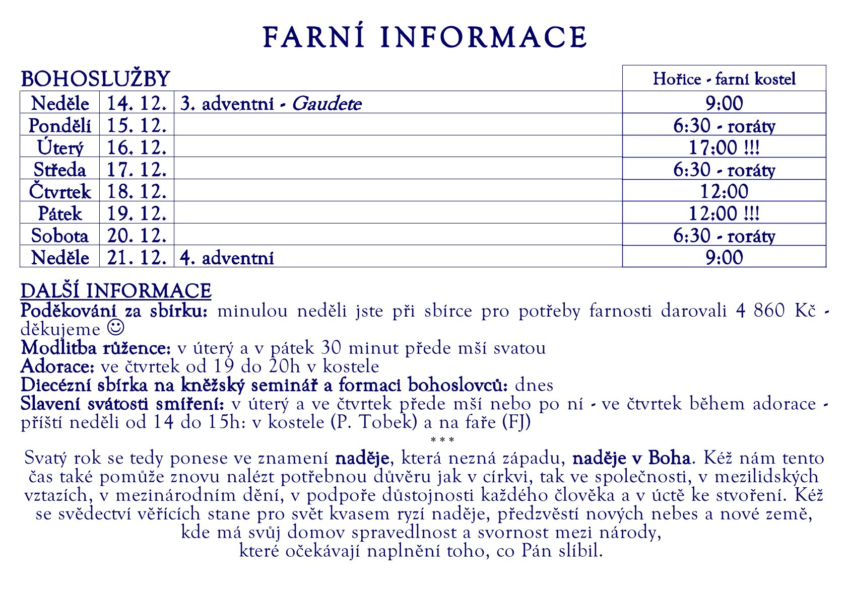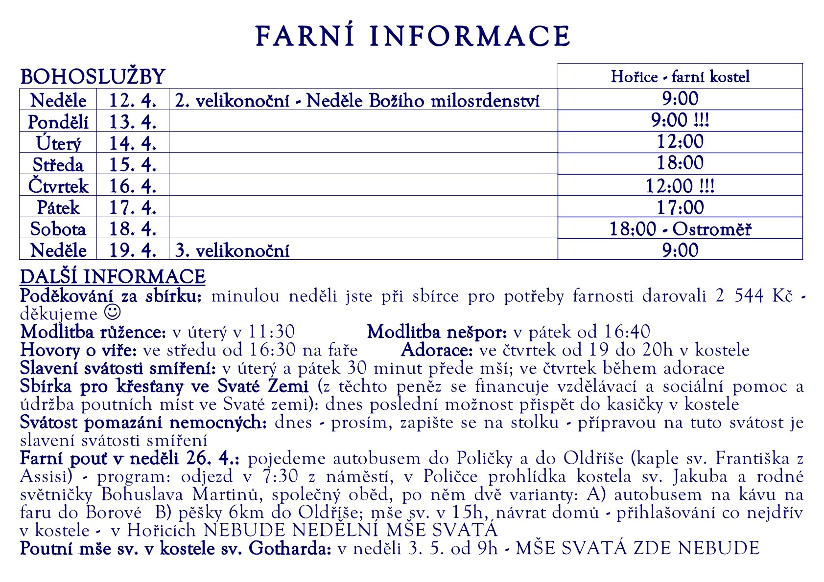 Adorace: ve čtvrtek od 19:00 do 20:00 v kostele