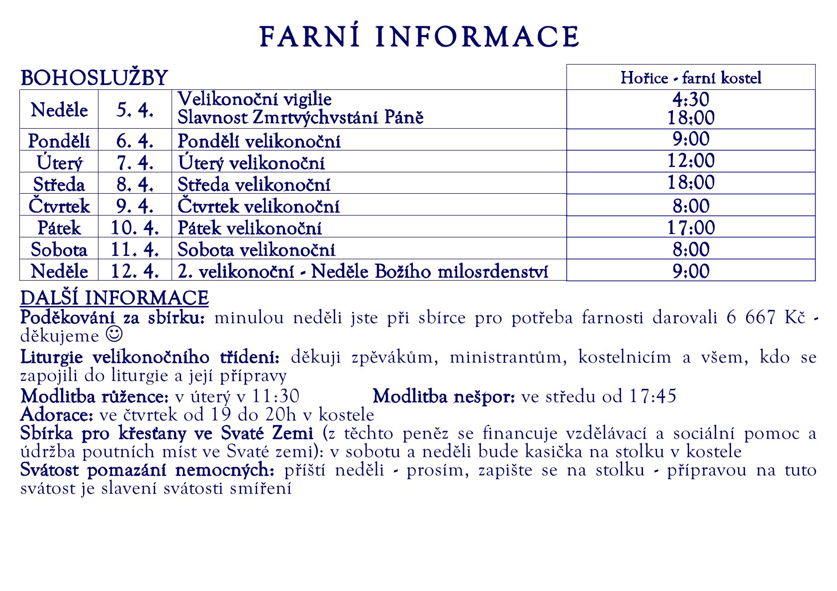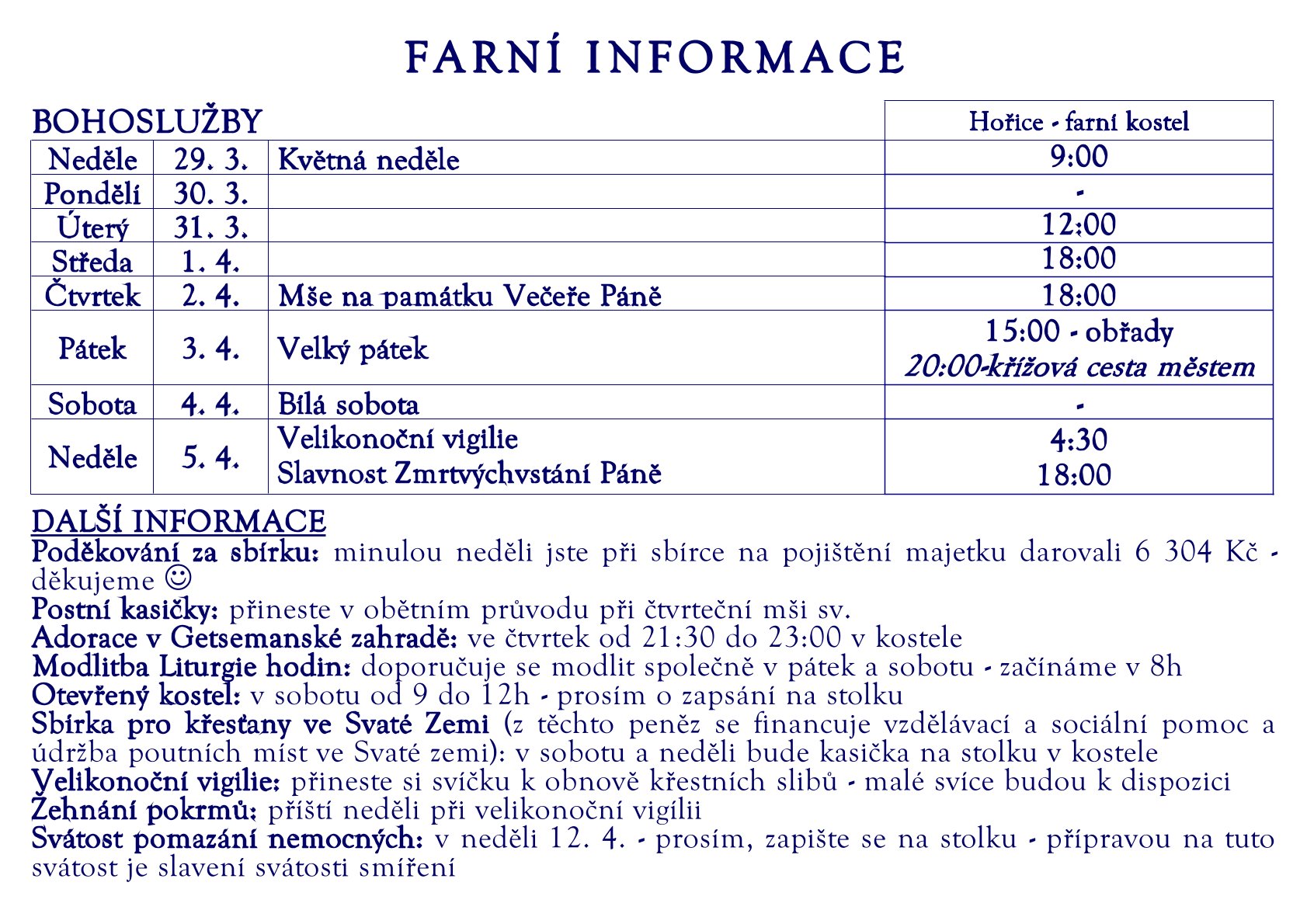 Svátost pomazání nemocných: v neděli 12. 4. - prosím, zapište se na stolku - přípravou na tuto svátost je slavení svátosti smíření